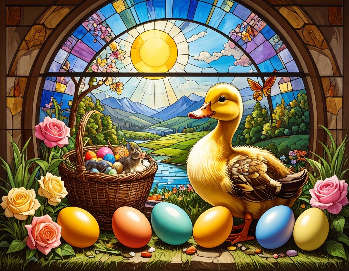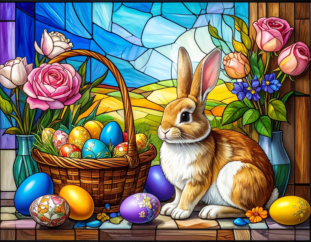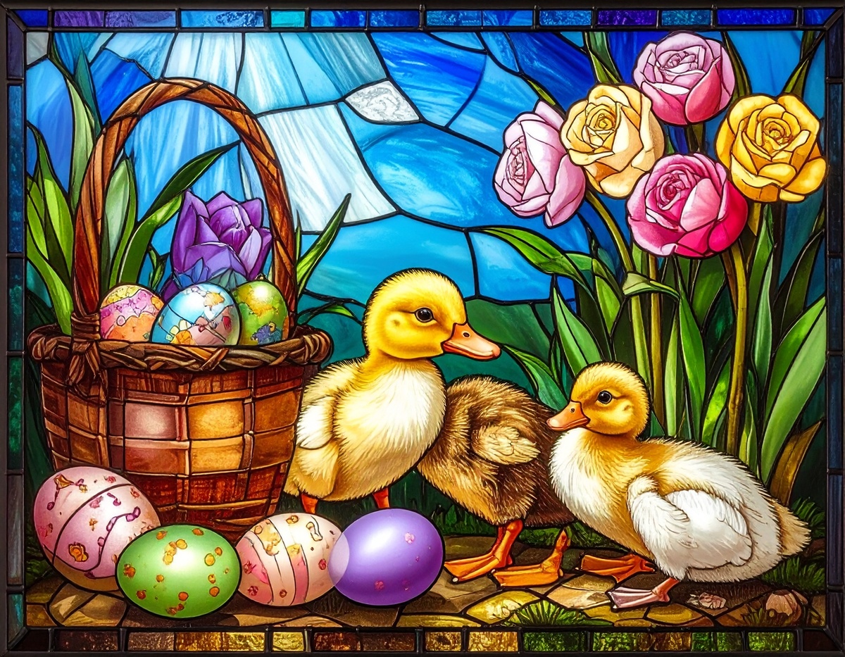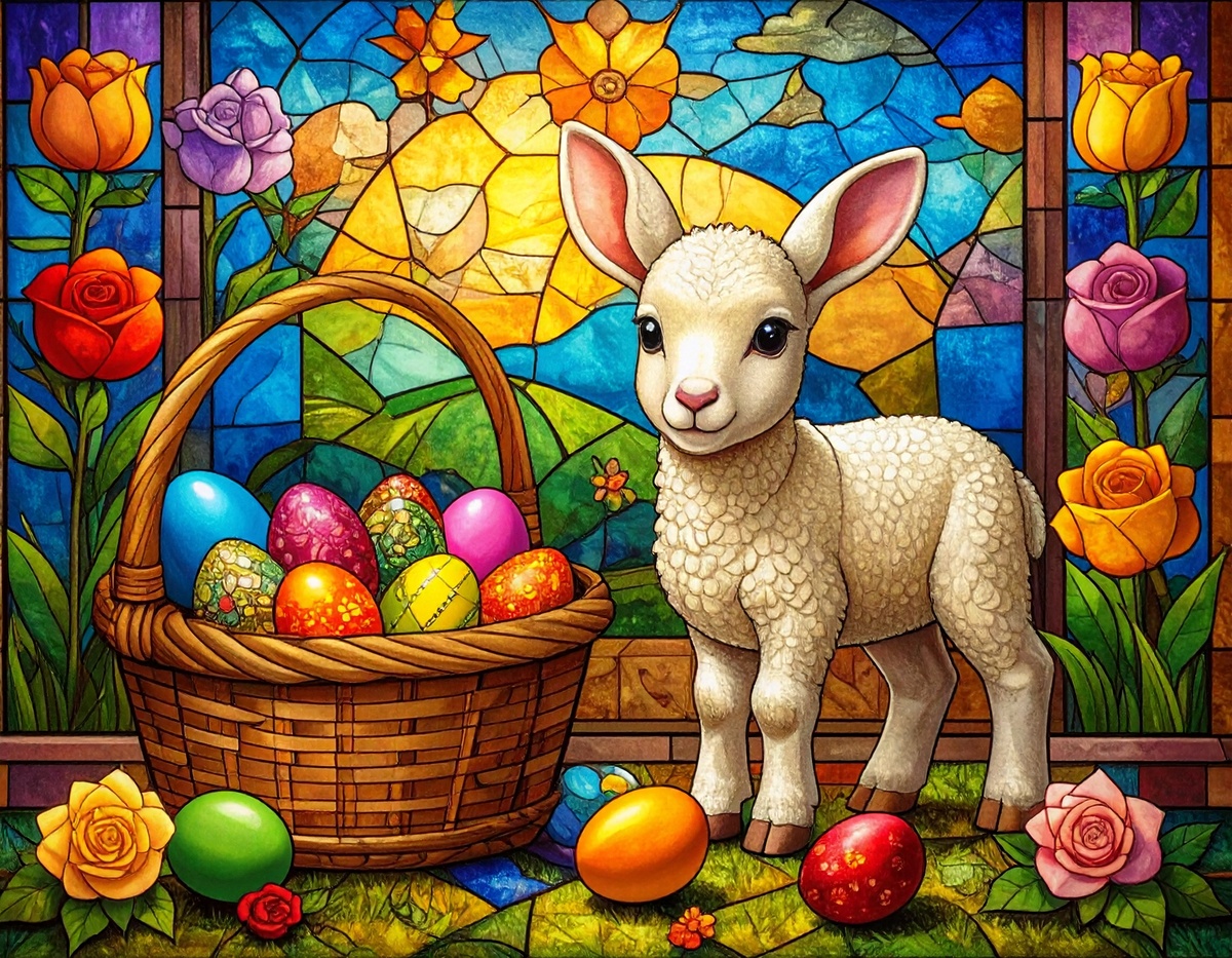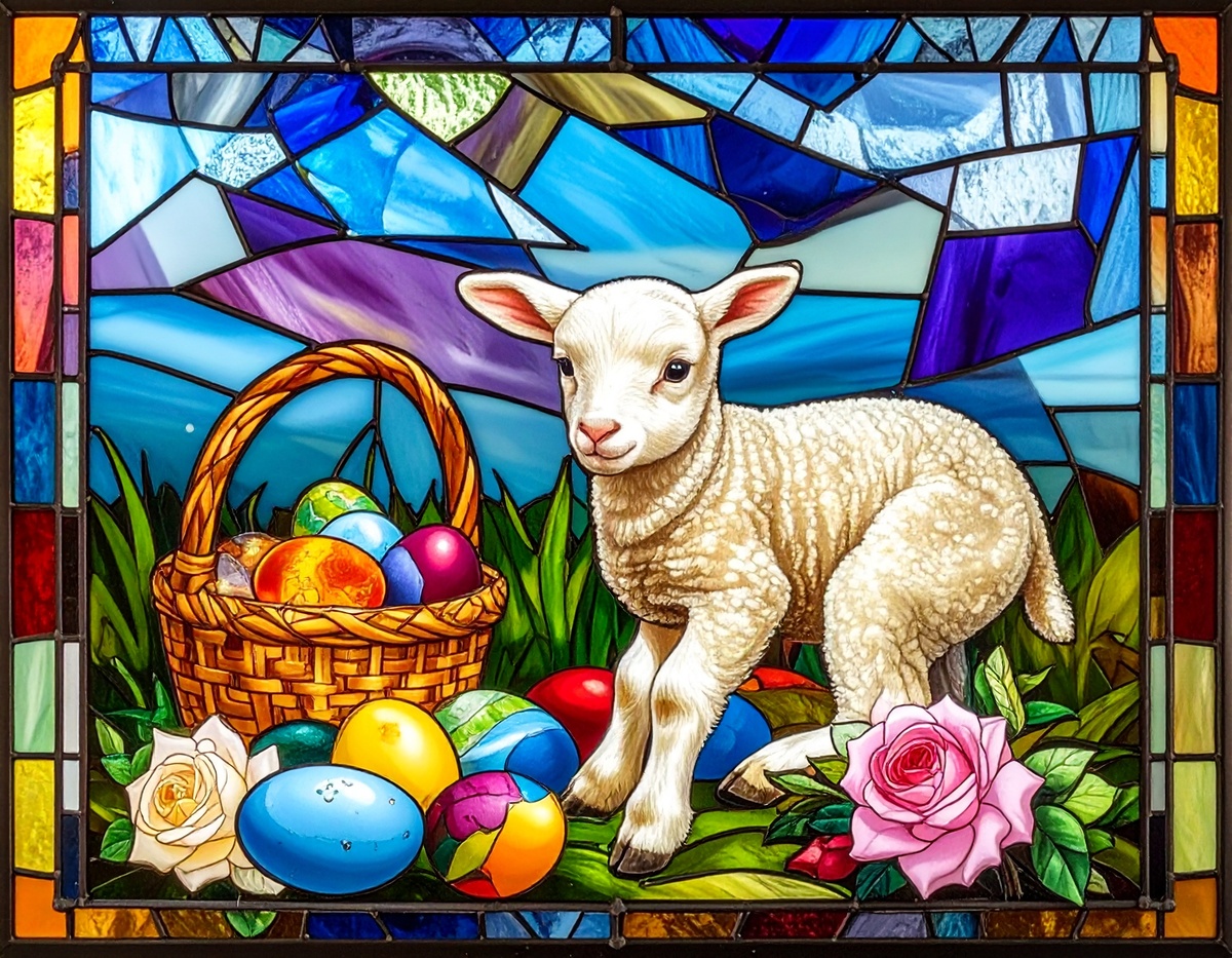 100 JPG STAINED GLASS EASTER CLIP-ART BUNDLE. Featurings bunnies, lambs, ducks, chicks and Highland cows. Lillies roses and easter eggs and baskets all beautiful colored stainede glass themed Easter designs. For commercial use of physical products only no reselling or sharting the digital files
