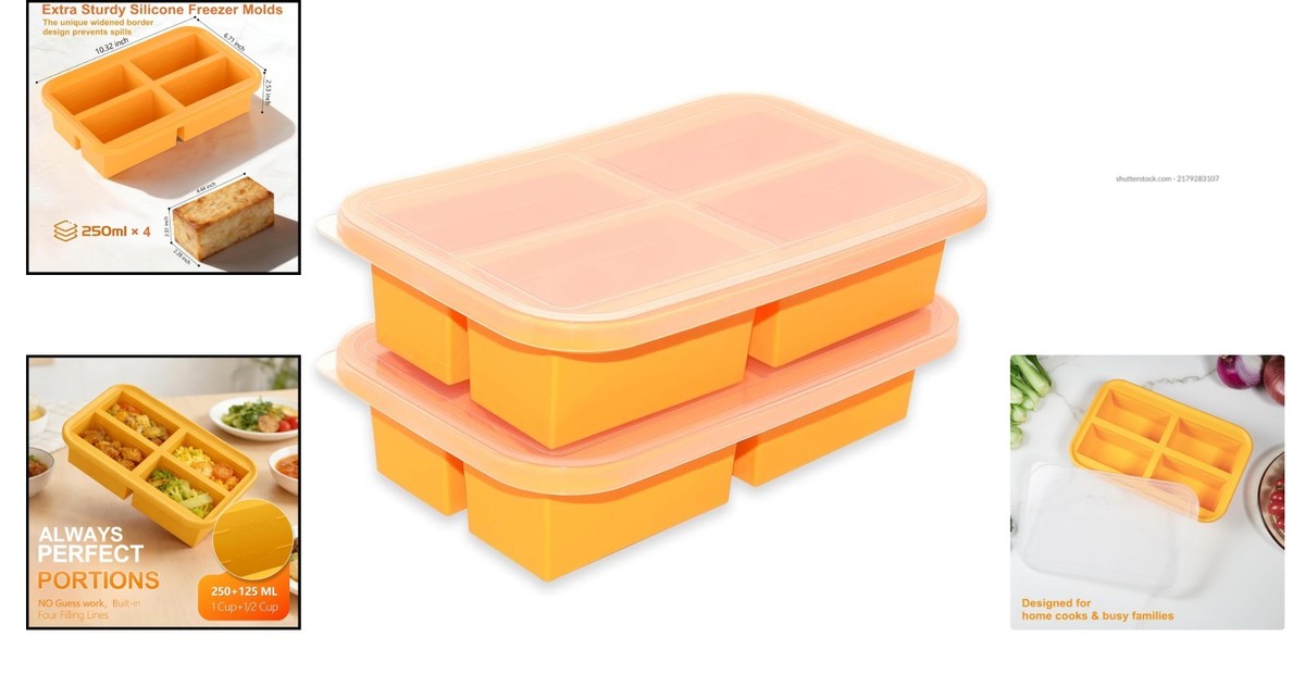 2 1-cup Silicone Soup Freezer Molds,2 Lids |
