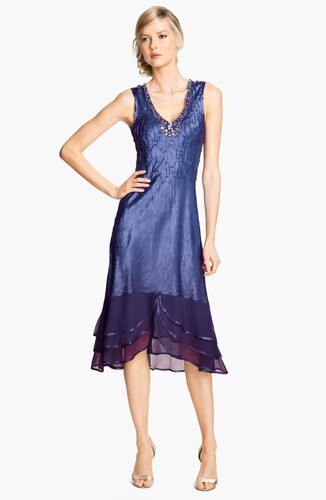 Komarov Ruffle Hem Midi Dress Sz Petite P/S Blue Ombre