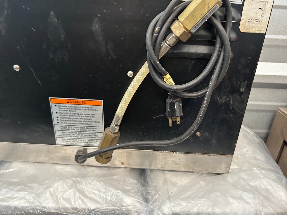 UNTESTED. Plugged in and turns on but not water tested. It has been sitting for a long time in storage and likely needs to be descaled before normal use. It's visibly in very excellent condition and shows no signs of any issues. NOTE: No coffee basket.