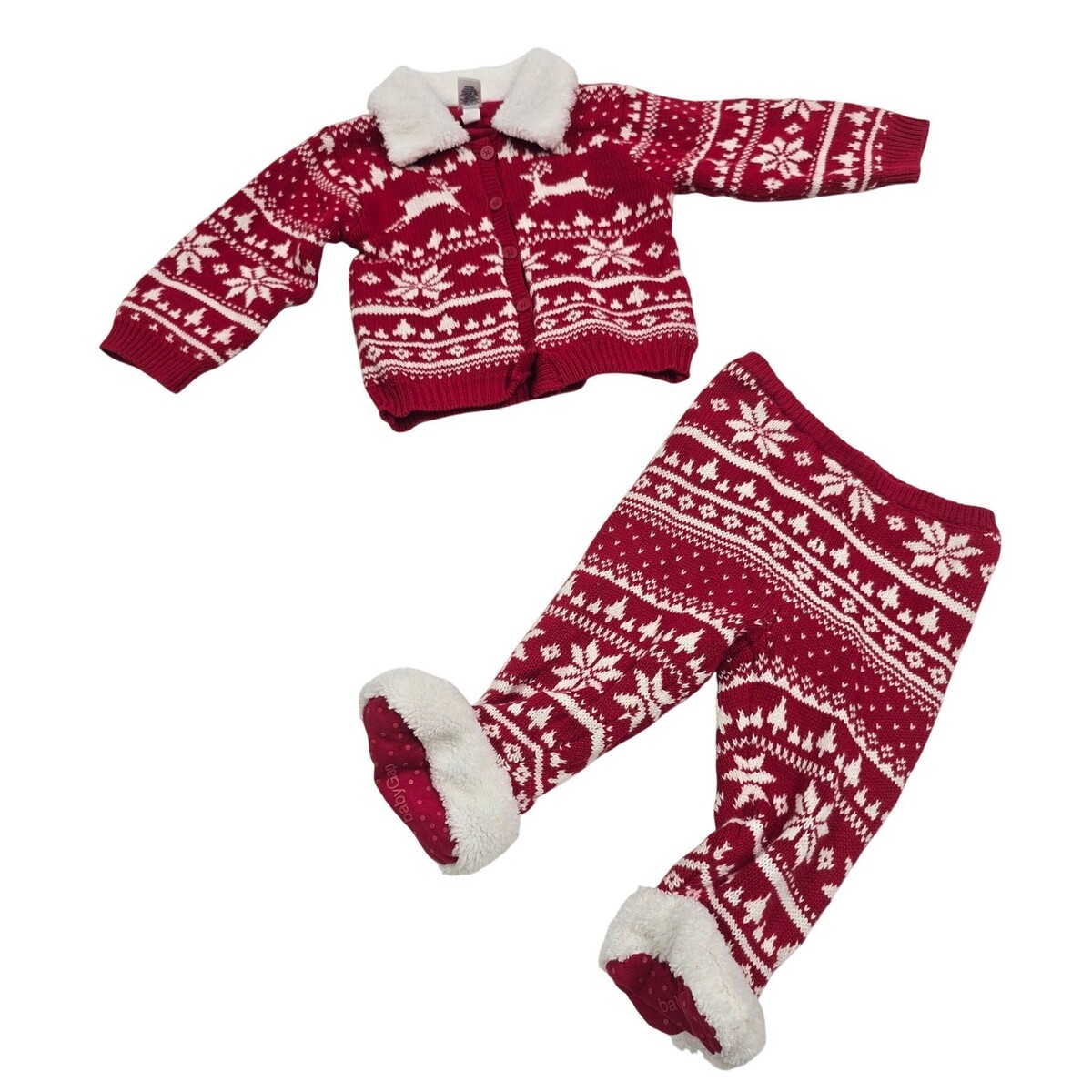 Keywords: Christmas, Holiday, Winter, Fair Isle, Reindeer, Snowflakes, Cozy, Knit, Baby Outfit, Red, White, babyGAP, Newborn, 6-12 Months, Footed Pants, Cardigan, Faux Fur, retro, VTG, preppy, unique, trendy, warm, comfy, cotton, eco-friendly, skin-friendly