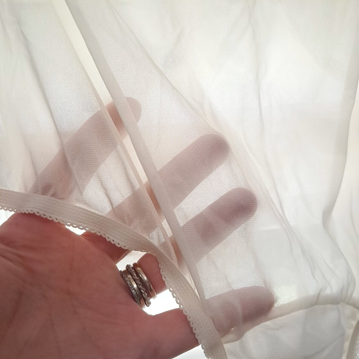 Color is C. Glow(Possibly "cream glow") Nylon granny panties that are sheer/semi sheer. New with tag. See pics for measurements.