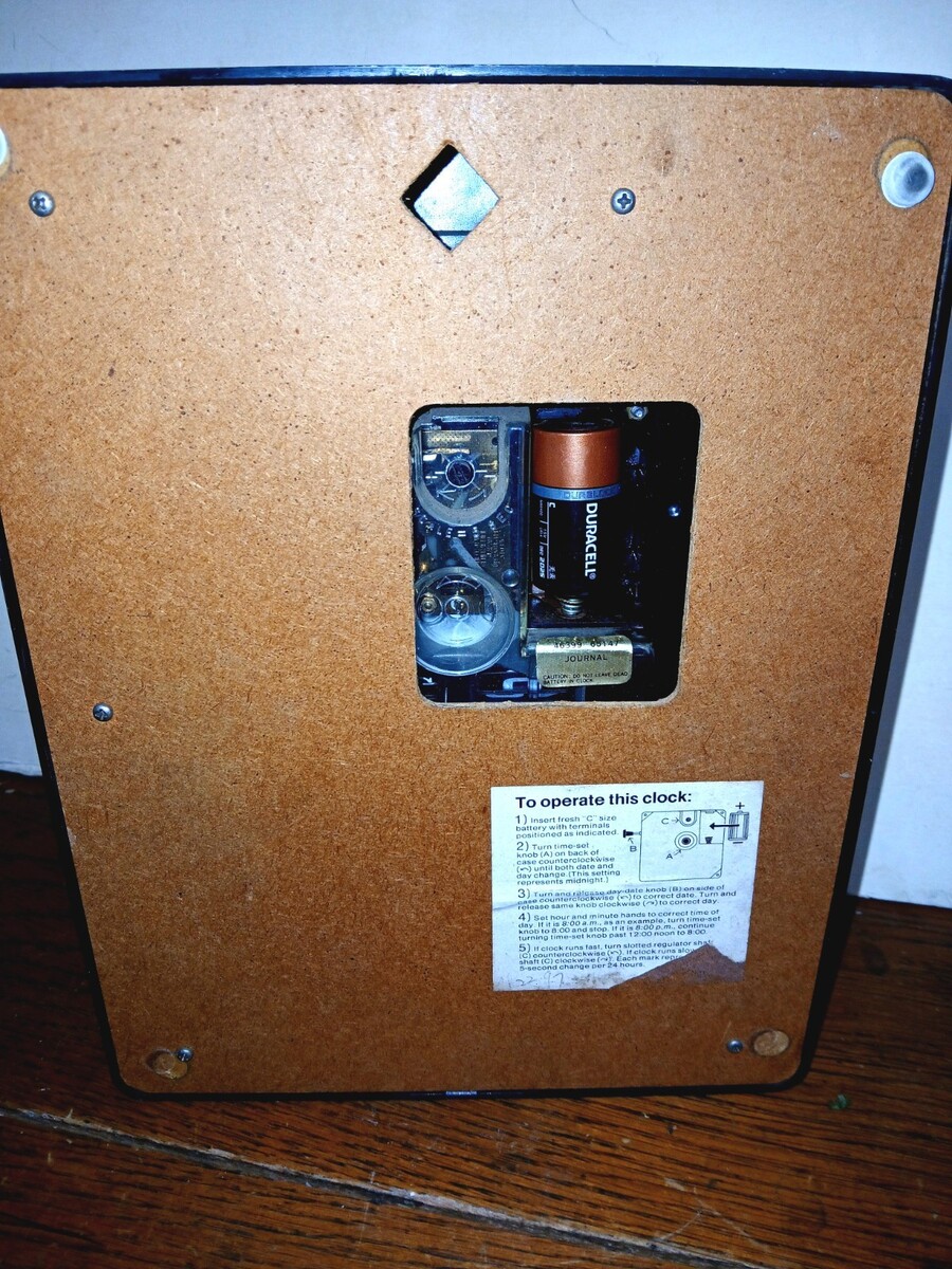 This is a vintage Westclox battery operated clock Mid Century Modern style 11". Tested and keep great time. Battery operated (needs 'c' battery). No chips or cracks. It is missing a hand wind key but I substituted for one that works. Ships fast!