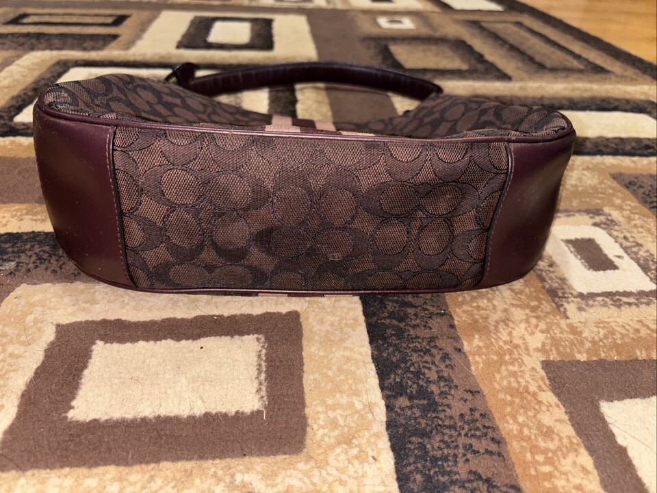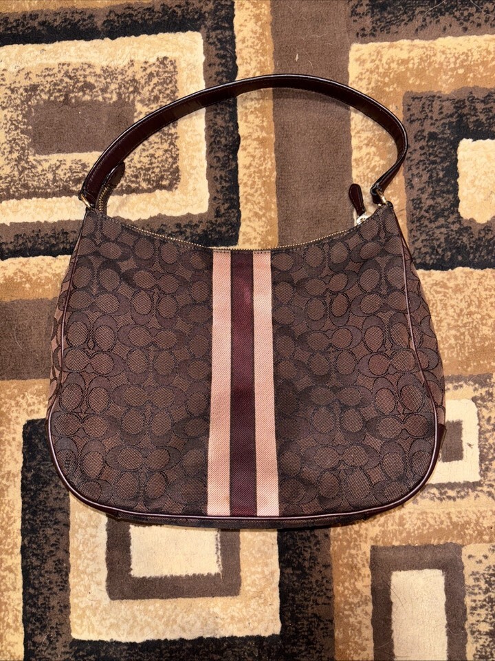 COACH SIGNATURE STRIPE MONOGRAM JACQUARD BROWN HOBO/SHOULDER BAG, LEATHER F39042