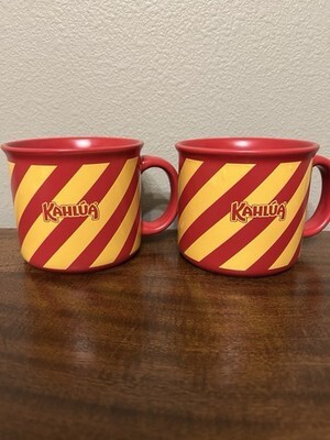 Kahlua Red Yellow Striped Coffee Mugs Set of 2 Promo Cups 16 Oz. 2024