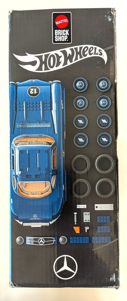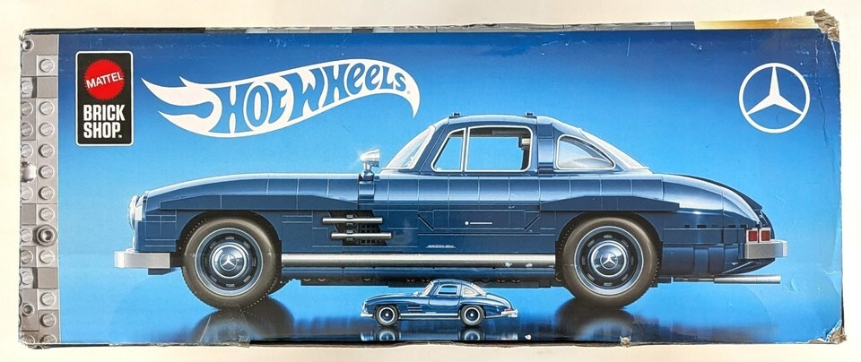 Mattel Brick Shop Hot Wheels Mercedes-Benz 300 SL Building Kit with 1600pcs. New in box. Some of the box edges are heavily scuffed (see photos) but the box itself is intact and unopened.