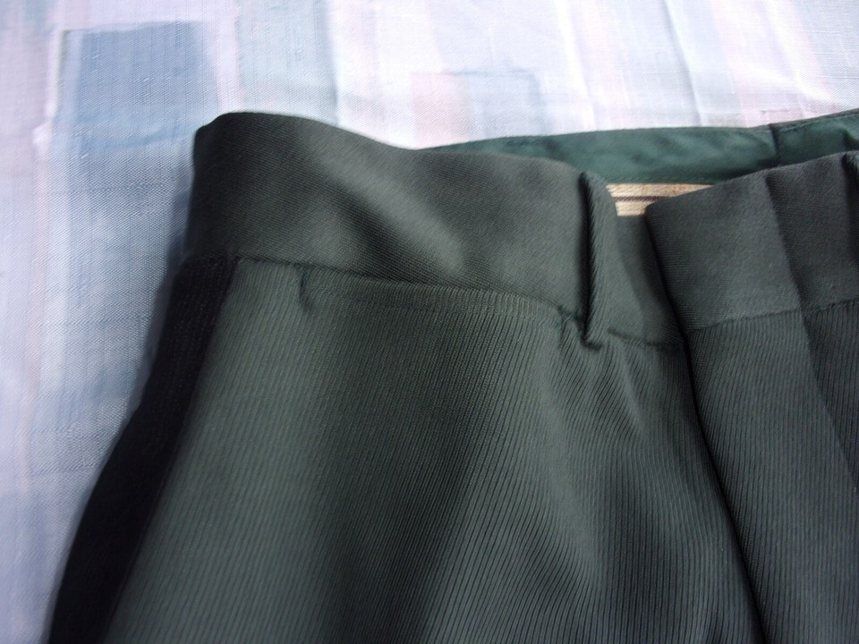 ONE OF A KIND UNIFORM PANTS DATED TO 1957 : THATS 3 YEARS AFTER THE FIRST CLASS A PANTS CAME OUT, THIS IS A GOLDEN FIND. AN ORIGINAL 1957 PAIR OF CLASS A DRESS GREEN PANTS AND WITH THE ORIGINAL OFFICER BLACK STRIPE.