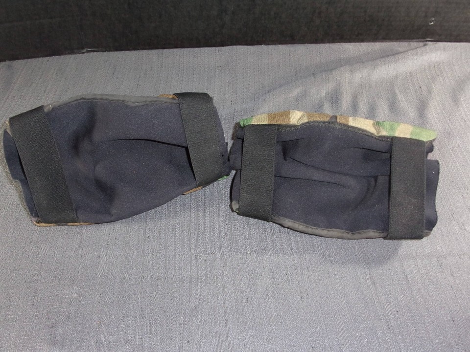 USGI U.S. MILITARY BDU WOODLAND CAMOUFLAGE MEDIUM TACTICAL ELBOW PADS HOOK & LOO