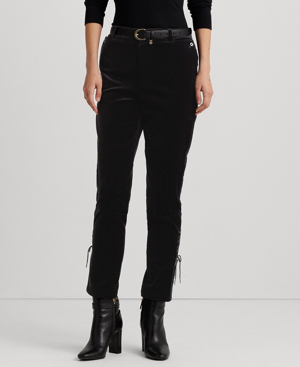 Lauren Ralph Lauren Women's Casual Stretch Velvet Jodhpur Pants, Black Velvet, 4