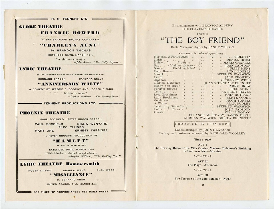 The Boy Friend Program Wyndham's Theatre London England 1954 Anne Rogers