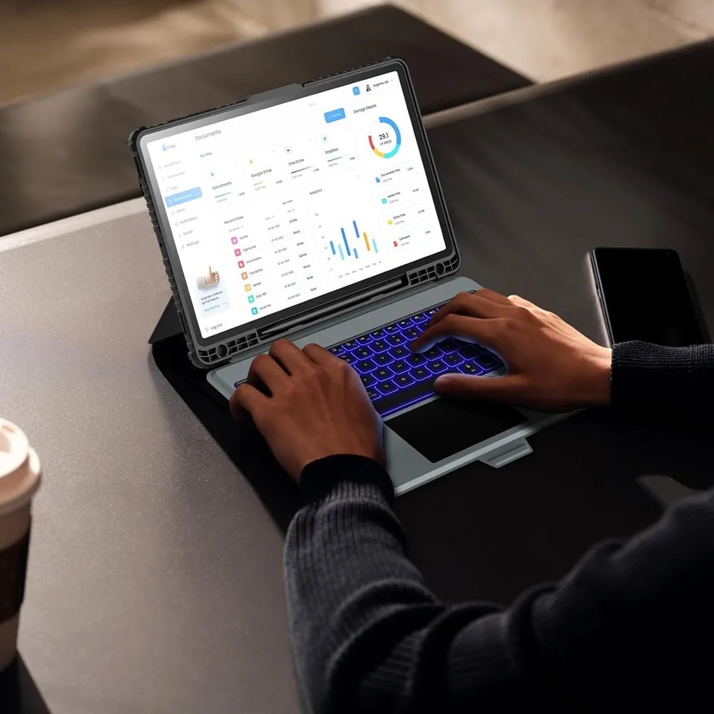 Boost your productivity with this backlit Bluetooth keyboard case designed specifically for Samsung Galaxy Tab S10 FE+. It combines a responsive wireless keyboard with a protective tablet cover, giving you laptop-style typing and everyday device protection in one setup.