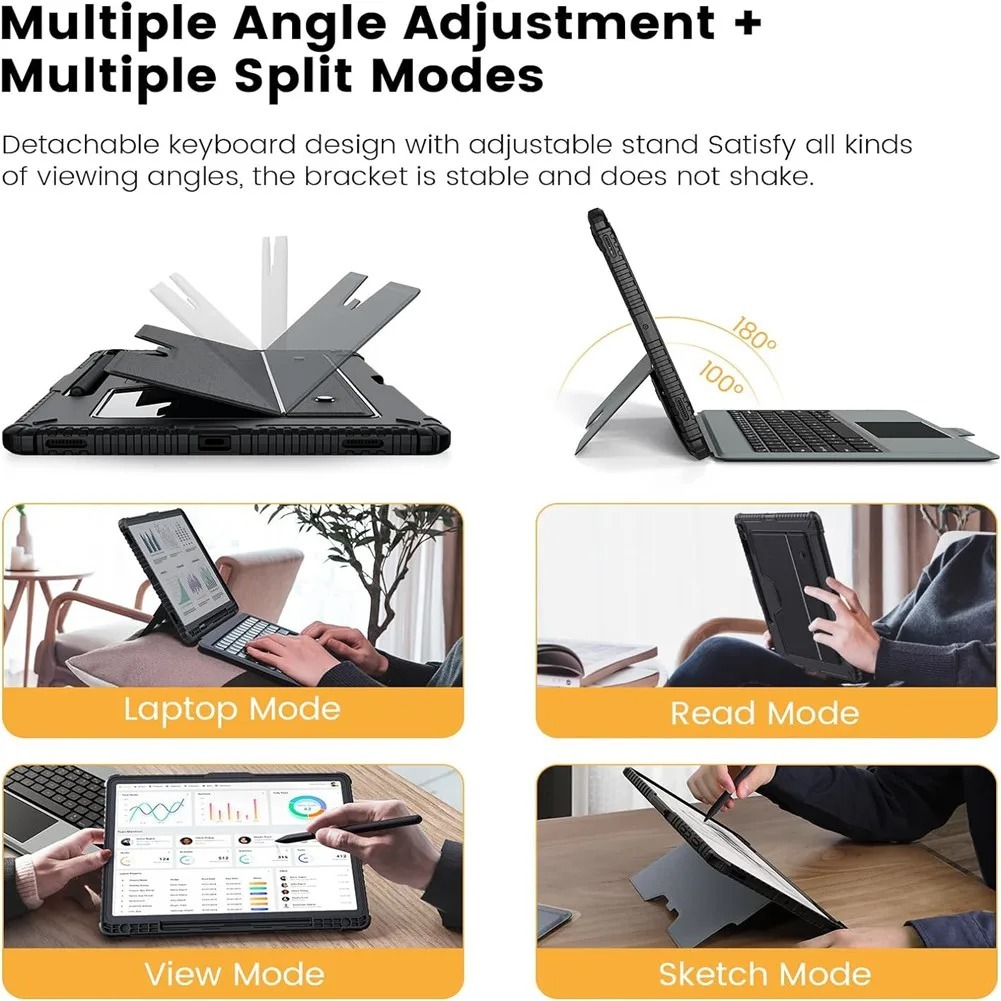 The detachable Bluetooth keyboard delivers smooth, low-noise typing, while the adjustable backlight lets you work comfortably in low-light environments. The fitted protective case shields your tablet from scratches and minor impacts while keeping all ports and controls fully accessible.
