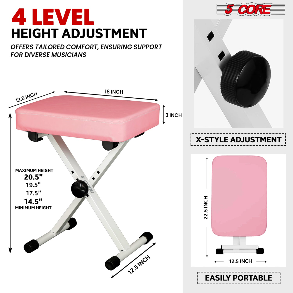 5 Core Keyboard Bench 3" Padded Cushioned Piano Stool Height Adjustable Guitar S