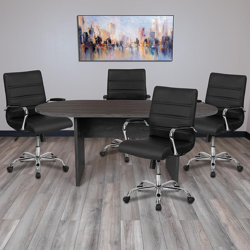 5 Pieces Modern Gray Oval Conference Set With Four Black Chrome Chairs