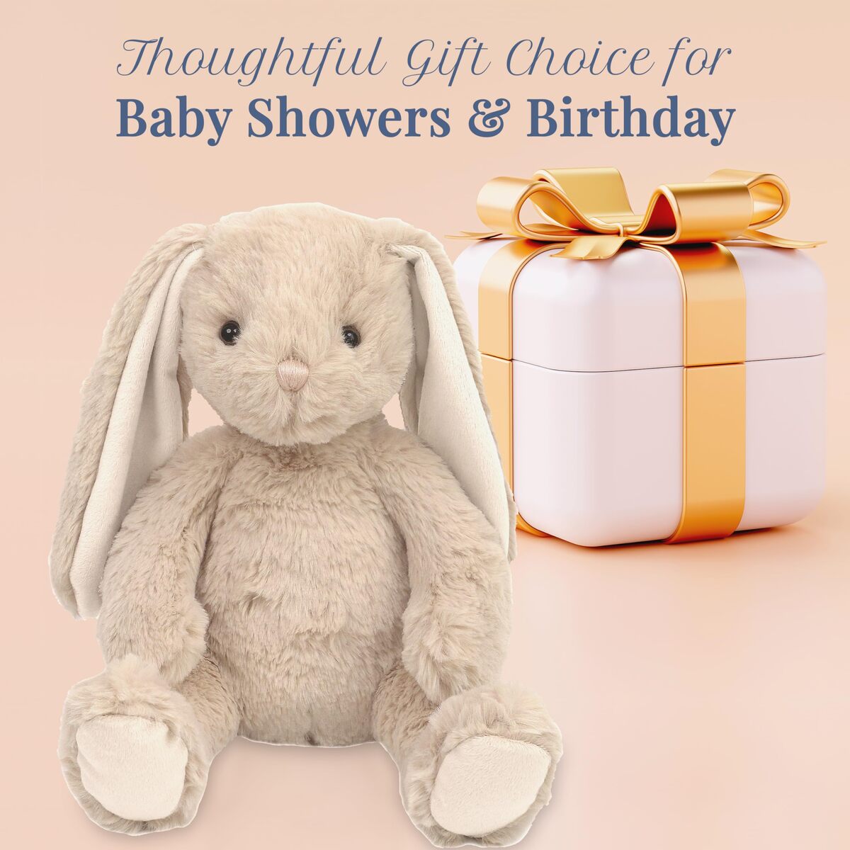SUPER SOFT CUDDLY PLUSH BUNNY ? Meet Buffy the Bunny, an irresistibly soft stuffed animal that?s perfect for cuddles and snuggles. With its gentle, plush texture and endearing design, Buffy the Bunny is an ideal companion for bedtime comfort, playtime adventures, or as a comforting friend during travel. Its plush body makes it a huggable buddy for kids and bunny lovers of all ages.,PERFECT GIFT FOR ANY OCCASION ? Whether for Easter, a baby shower, a birthday, or just as a thoughtful gesture, Buffy the Bunny makes a perfect gift. Its timeless appeal and snuggly texture ensure that it will be a cherished toy for years to come. Whether as a comforting bedtime companion or a special gift, Buffy the Bunny is a must-have addition to any plush collection.,DURABLE, HUGGABLE MADE TO LAST ? Crafted with 100% premium polyester, this plush bunny is made to last through countless cuddles, playtime, and adventures. The high-quality stitching ensures that Buffy maintains its shape even after hours of snuggling, making it the perfect long-term companion for your child.,EASY TO CLEAN MAINTAIN ? Designed with busy parents in mind, Buffy the Bunny is easy to clean and maintain. Simply spot clean with a damp cloth and air dry to keep it looking soft and fresh, ensuring it stays huggable and ready for every cuddle session.,PERFECTLY SIZED FOR LITTLE ARMS TO HUG ? Measuring 14 inches tall, Buffy the Bunny is the perfect size for toddlers and kids to carry, cuddle, and bring along on every adventure. Whether at home, in the car, or on trips, Buffy the Bunny is always ready for warm hugs and endless love.