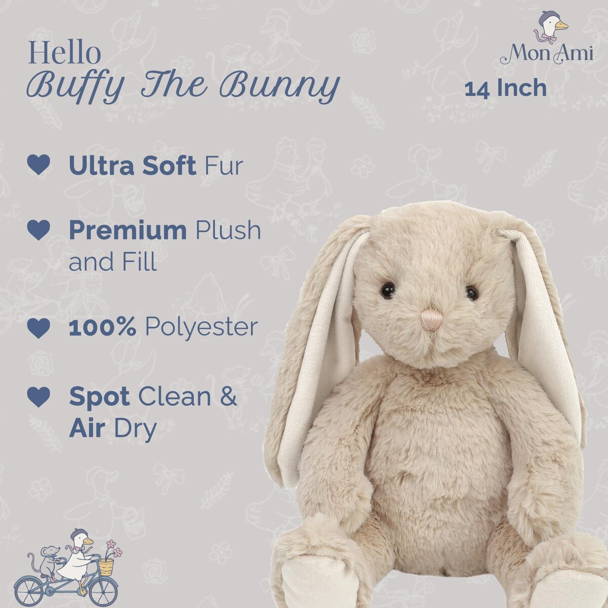 MON AMI Buffy The Bunny 14" Plush Toy Soft Stuffed Animal Cozy Companion