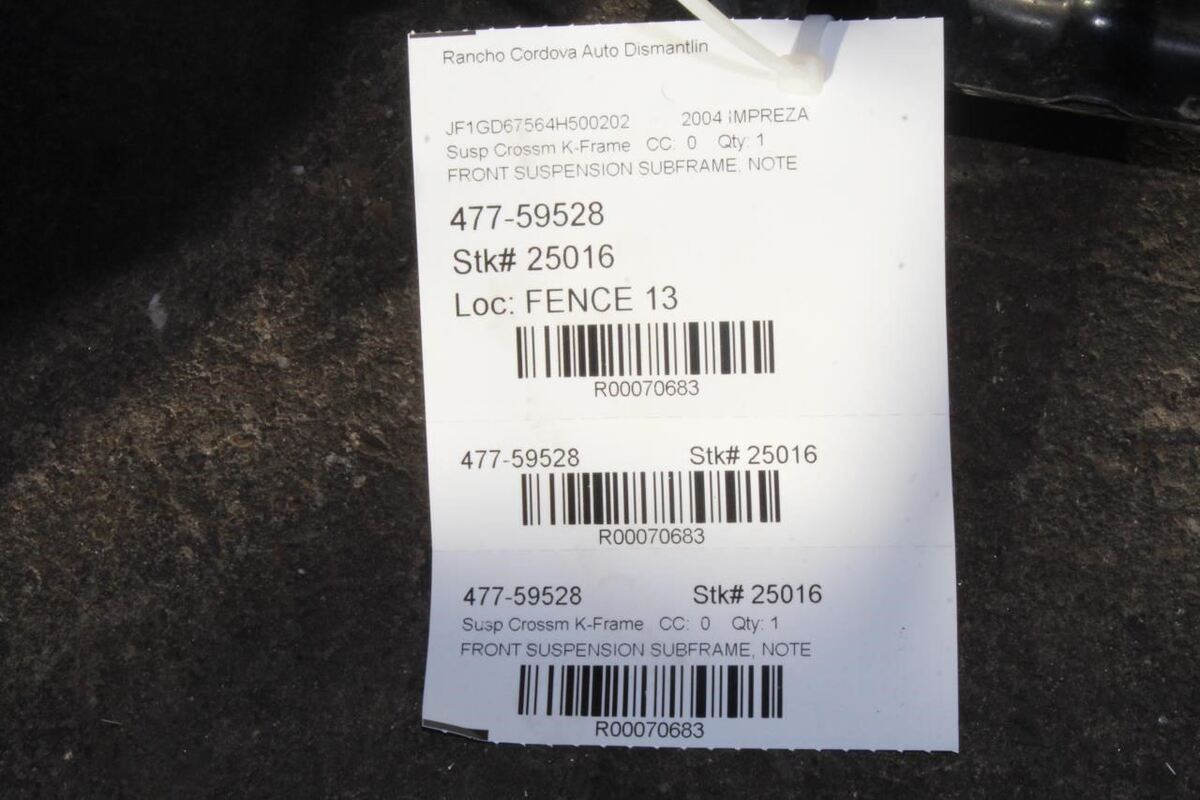 Crossmember/K-Frame Front Subframe Excluding STI Fits 02-05 IMPREZA 70683