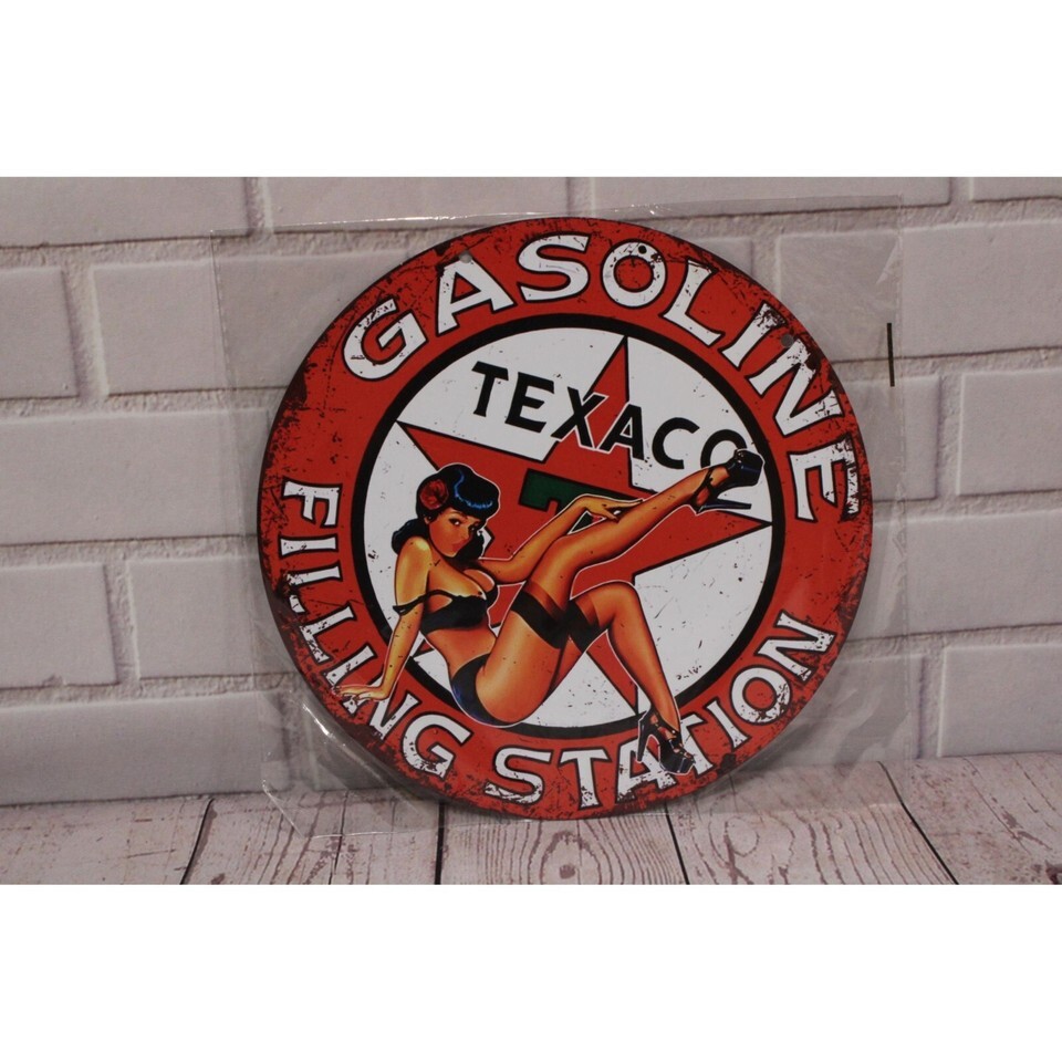 Retro Texaco Gasoline Filling Station Pin-Up Girl Metal Sign