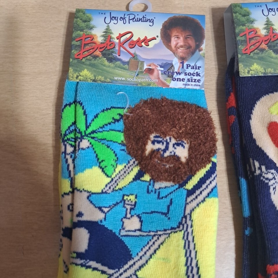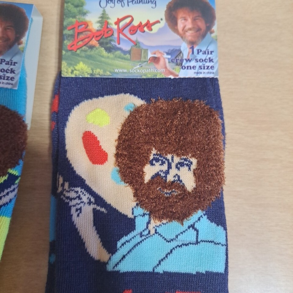 Bob Ross The Joy Of Painting Funny Novelty Crew Socks Unisex Lot Of 2 NWT