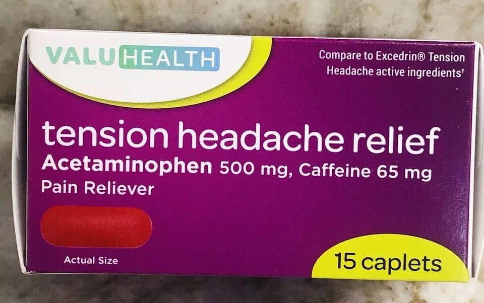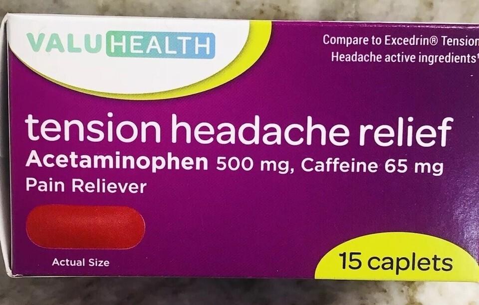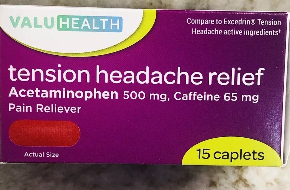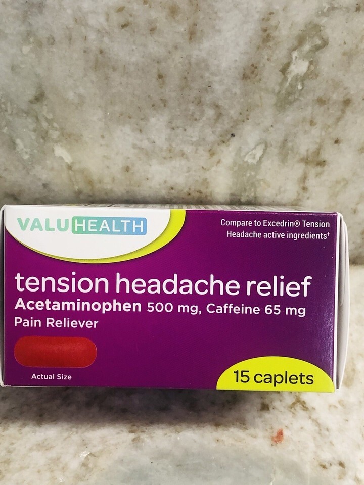ValuHealth-Tension Headache Relief-Acetaminophen 500mg/Caffeine 65mg:15 Caplets-Brand New-SHIPS N 24 HOURS.