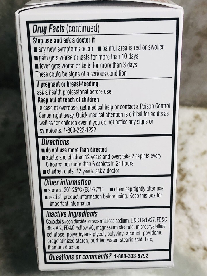 Dosage: 2 caplets/ 6 hours. Not more than 6 caplets/24 hours.
