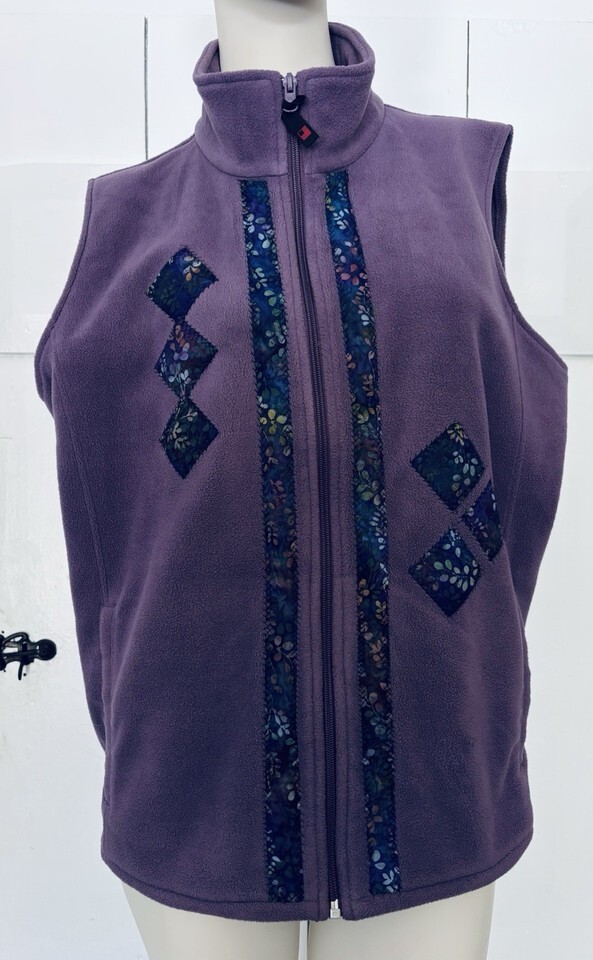 Woolrich Fleece Full Zip Vest Purple Floral Patch Granny Cottagecore Women’s XL