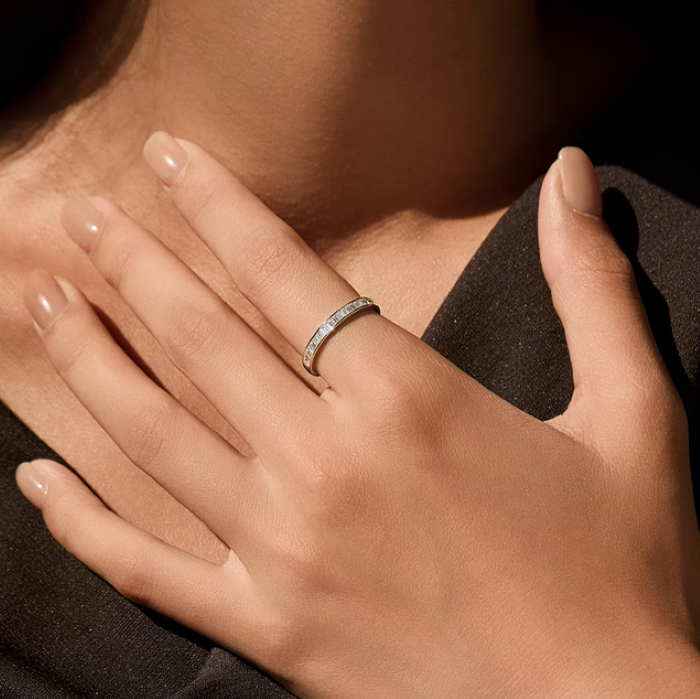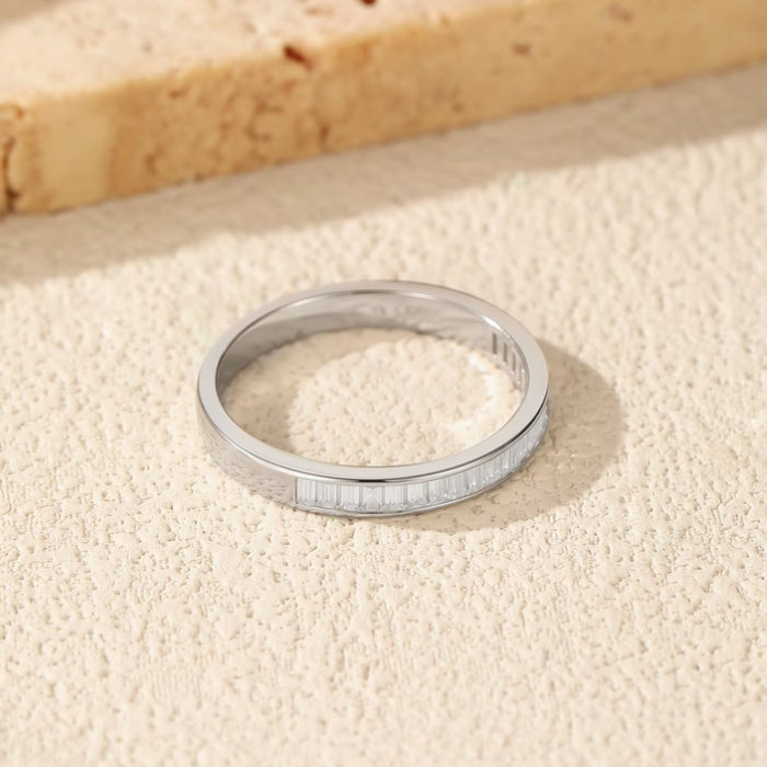Genuine 925 Sterling Silver Full Moissanite Emerald Cut Eternity Band (Size 5-9)