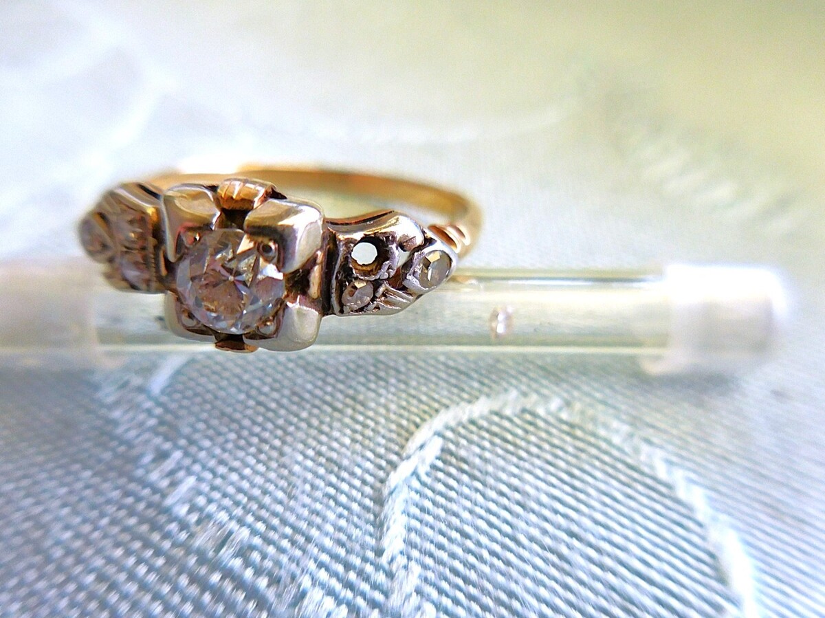 Art Deco 14K Yellow White Gold Diamond Engagement Ring Size 7