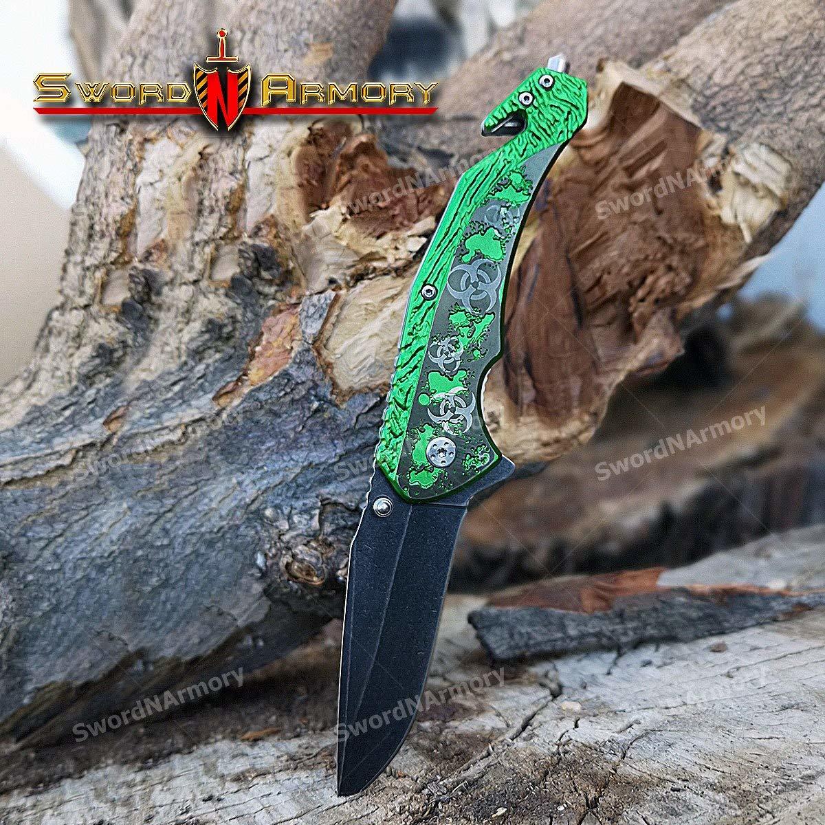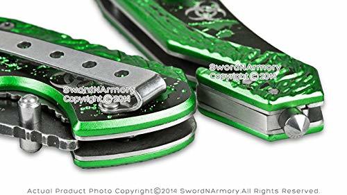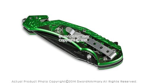 etrading 8" Emergency Thumb Open Pocket Knife Zombie Symbol Stone Wash Finish Bl
