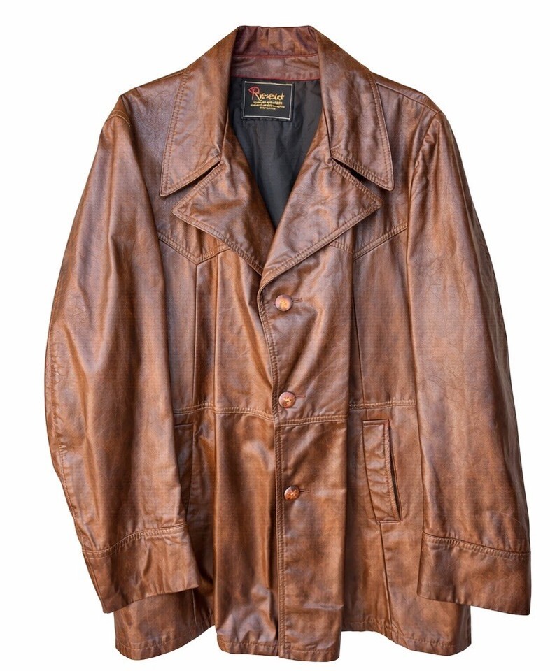 Vintage Reed Leather Jacket Mens Brown Blazer Sport Coat 60's 70s Disco 46L Club