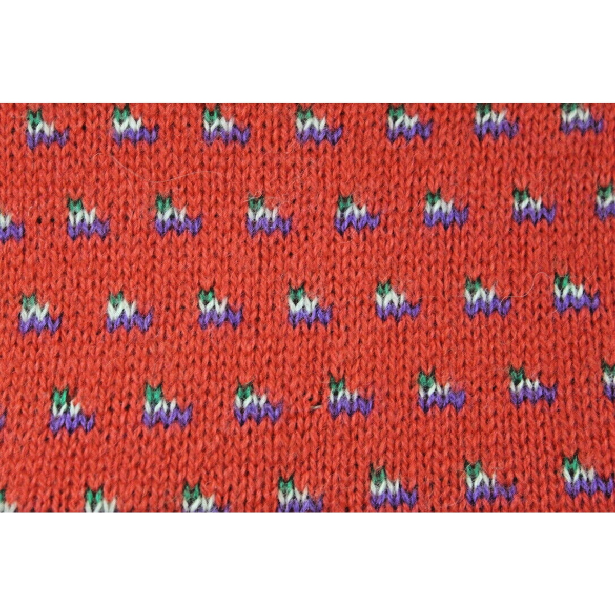 Red with purple + green intarsia design