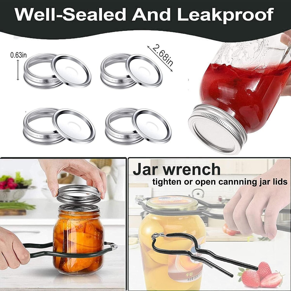 4 pcs Regular Mouth (70mm) Canning Lids and Rings set