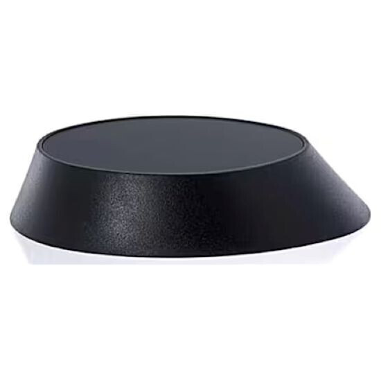 Black stand with a modern design and a matte finish.
