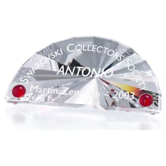 Faceted, half-moon shaped English title plaque with two Siam crystal