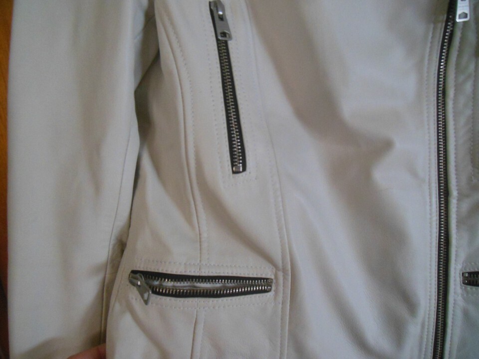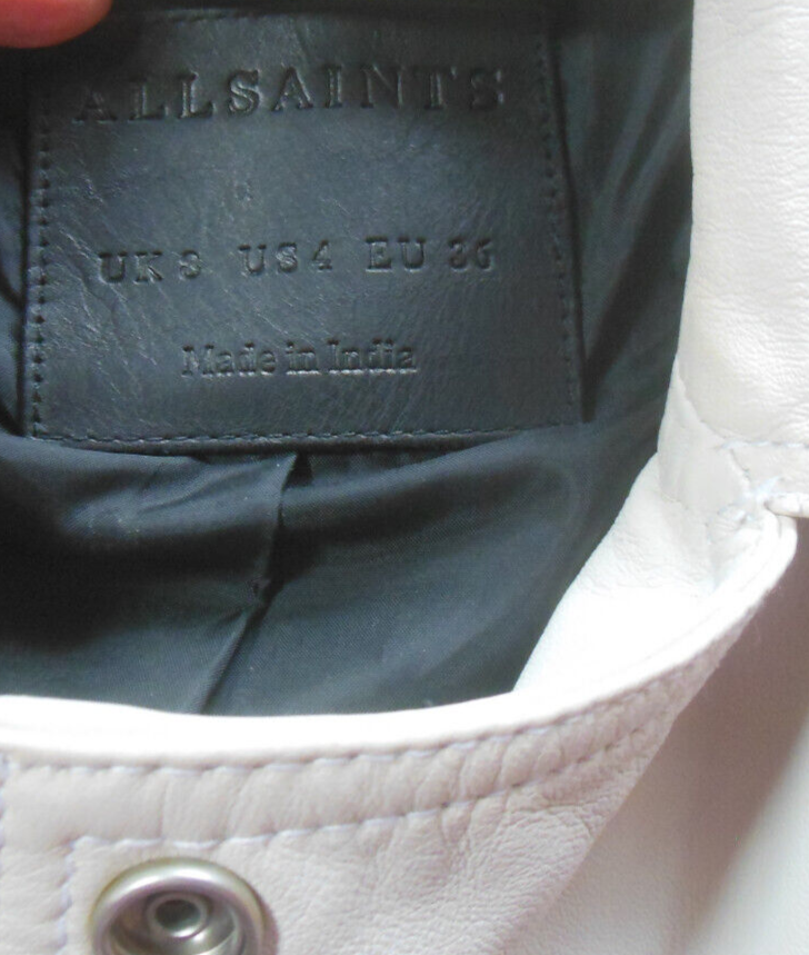 All Saints Catch Biker Leather Jacket Cream/White US Size 4