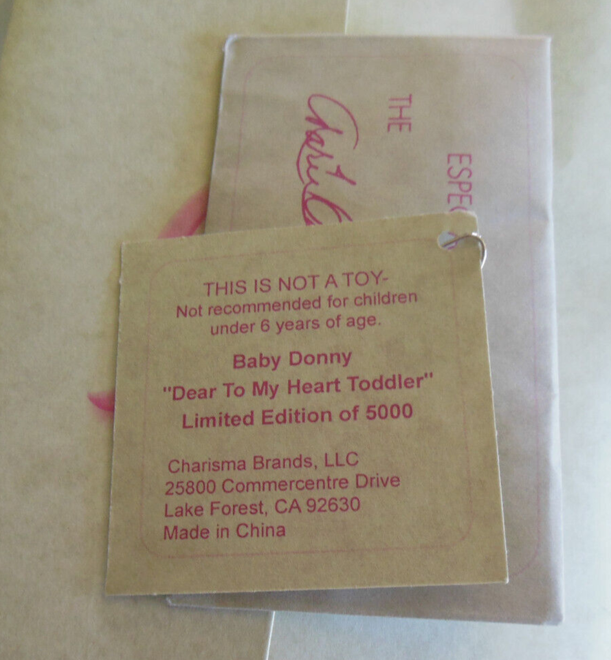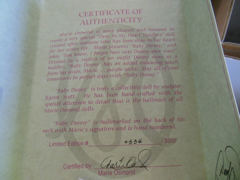 This limited edition Marie Osmond ?Baby Donny? doll is in its original packaging (with some minor wear to box) and has not been taken out from it's packaging or played