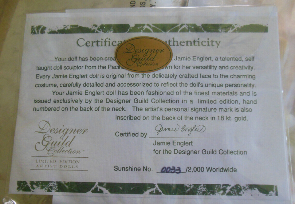 This vintage Designer Guild SUNSHINE porcelain doll is a limited edition and is signed by the designer.