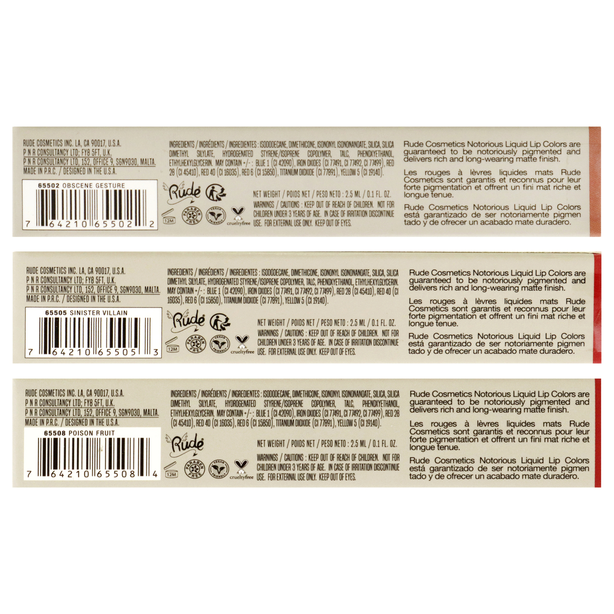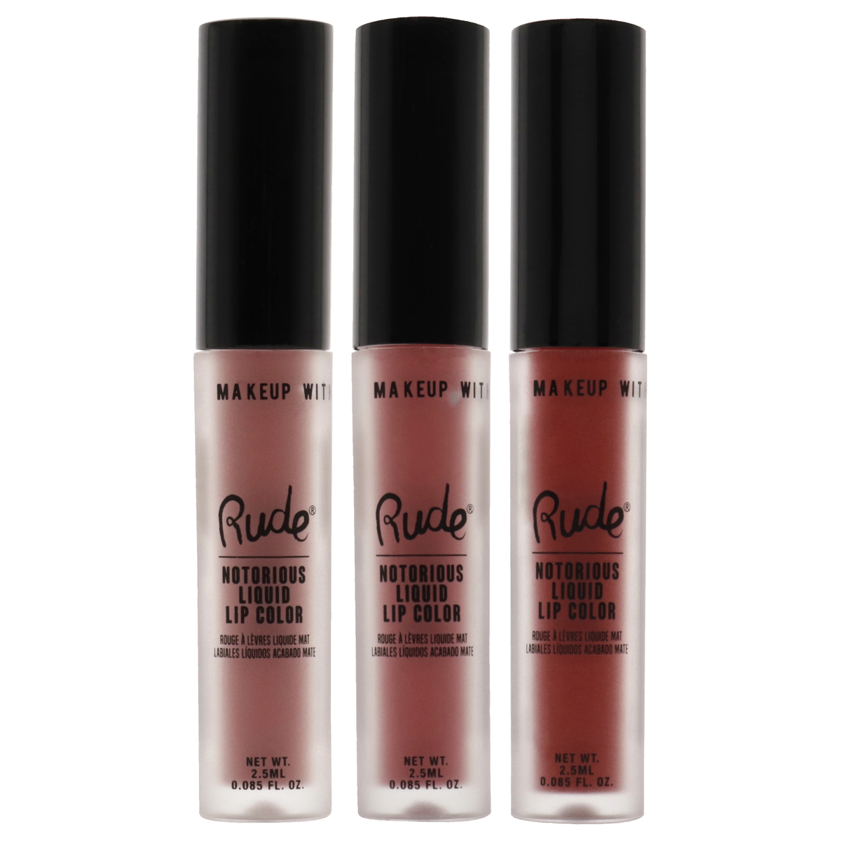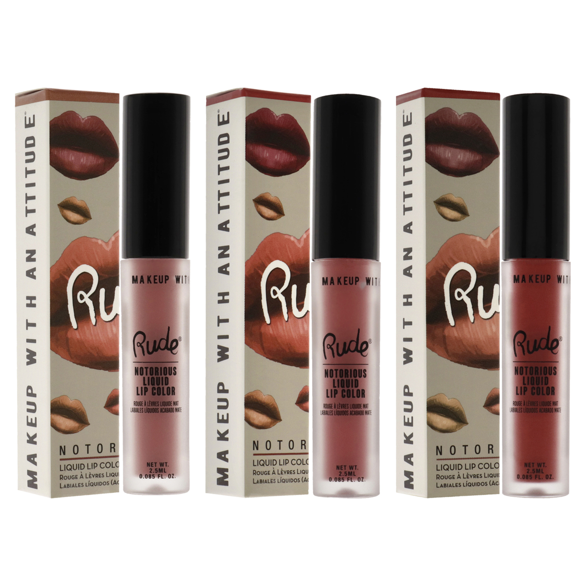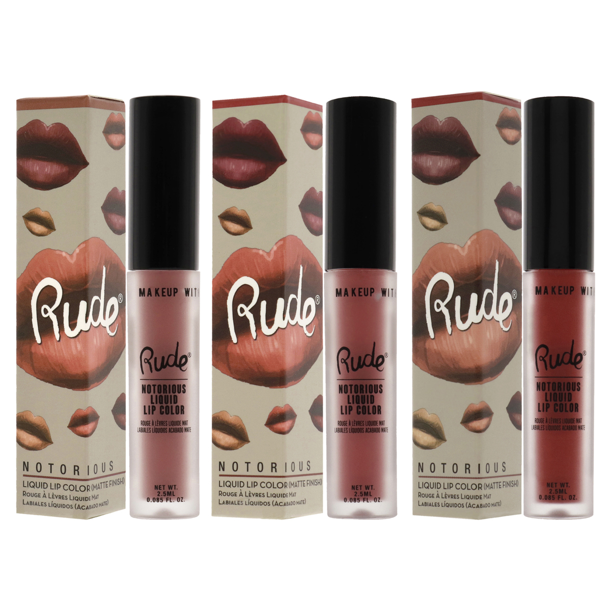 Notorious Rich Long Liquid Lip Color Kit by Rude Cosmetics for Women - 3 Pc Kit
