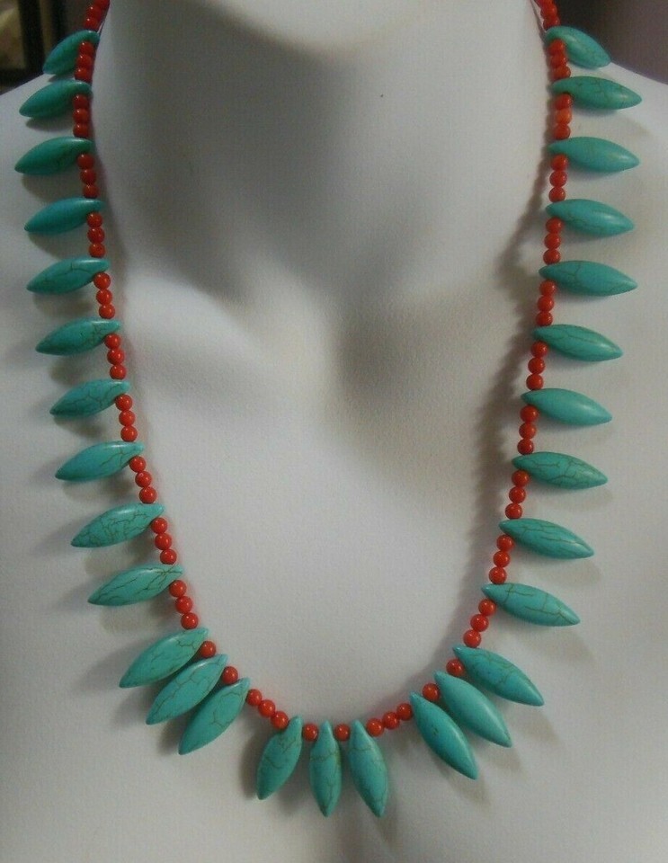 Vintage Turquoise & Coral Necklace & Earring and similar items
