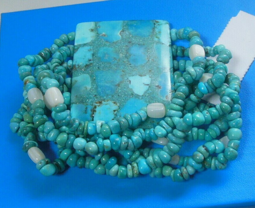 SAJEN Carved MOP & Turquoise Bracelet Multi-strand Stretch 2-Sided