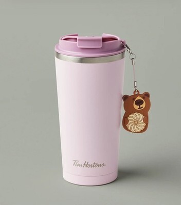 Sip your favourite brew in style with this Tim Hortons Pink Stainless Steel Travel Mug, the perfect companion for coffee and tea enthusiasts on the go. Decked in a playful pink hue and featuring the iconic bear charm, this 16oz mug combines functionality with a touch of whimsy, making it a great addition to any Tim Hortons collection or a charming gift for Valentine's Day.