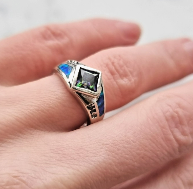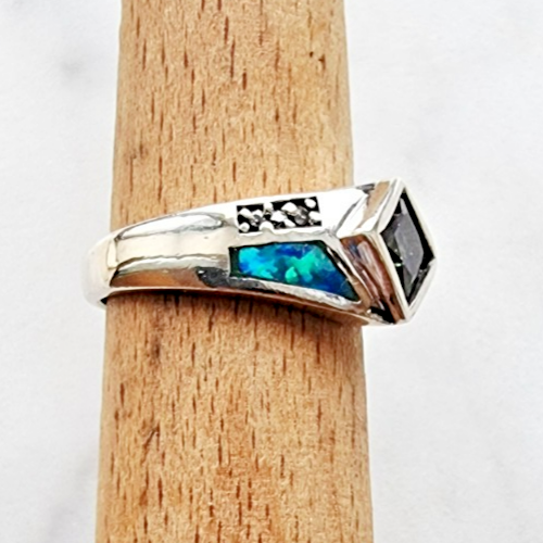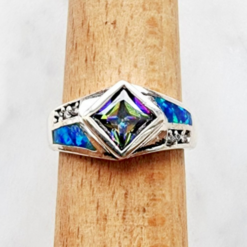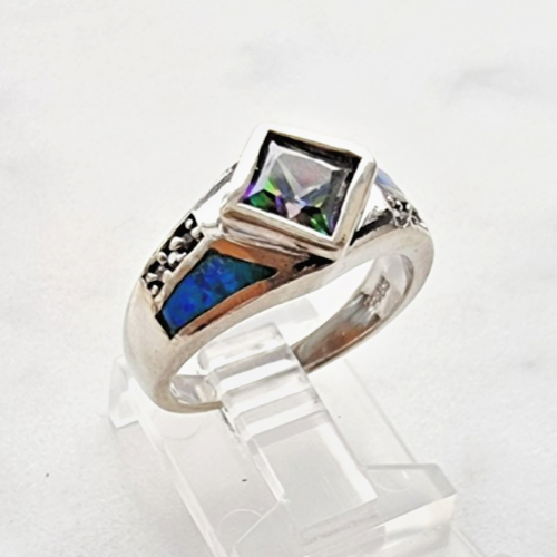 VINTAGE 925 STERLING SILVER MYSTIC TOPAZ AND OPAL RING SIZE 7