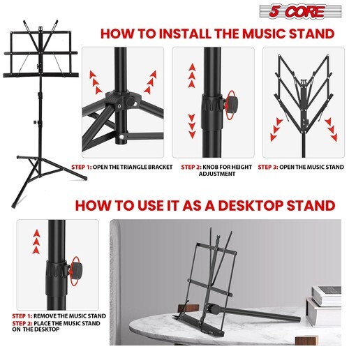 5 Core Music Stand For Sheet Music Professional Portable Adjustable Folding Musi