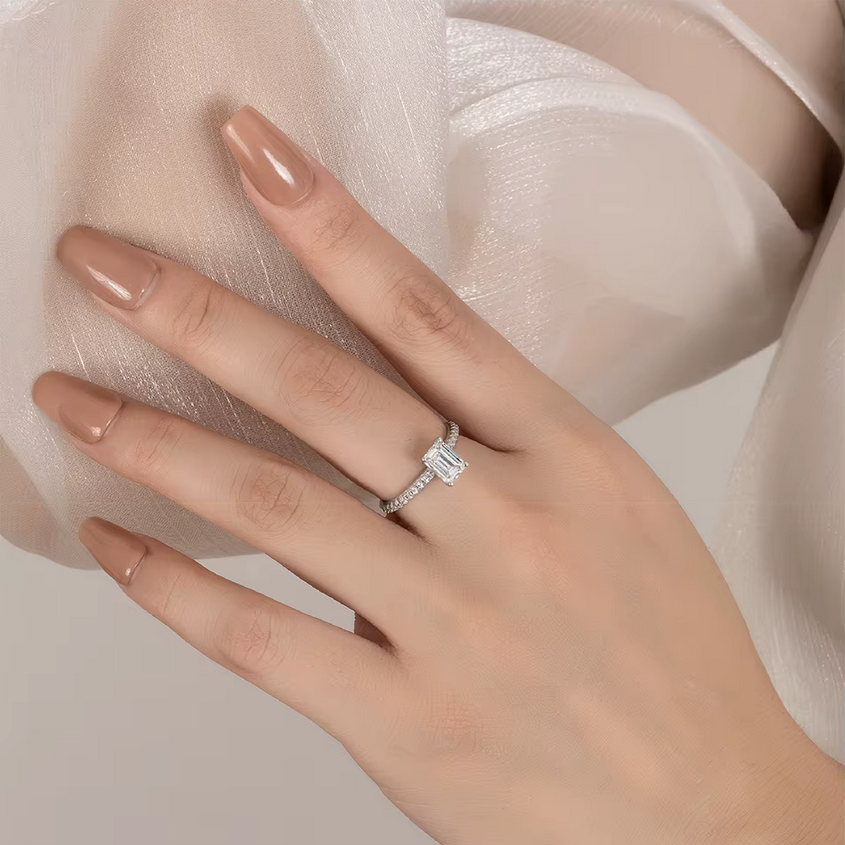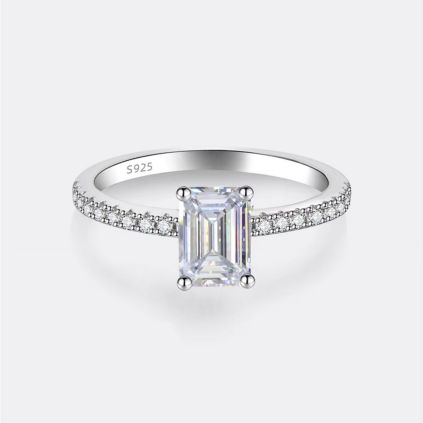 Luxury 925 Sterling Silver 1CT Emerald Cut Dazzling Moissanite Ring (Size 5-9)