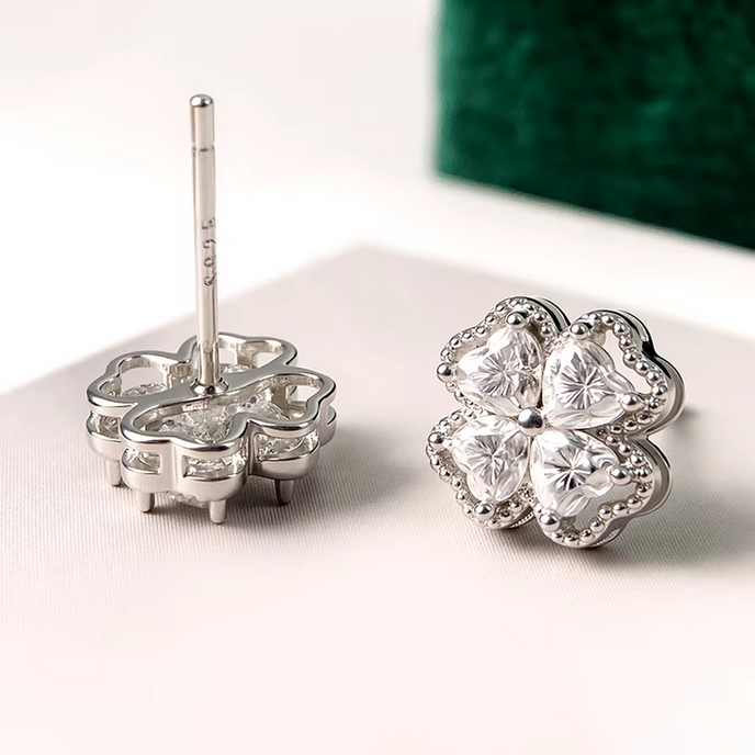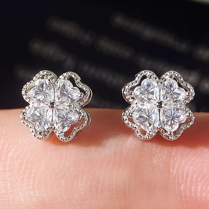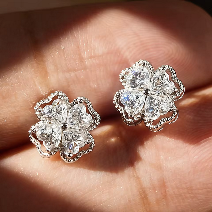 Genuine 925 Sterling Silver 0.8CT Heart Cut Full Moissanite Clover Stud Earrings
