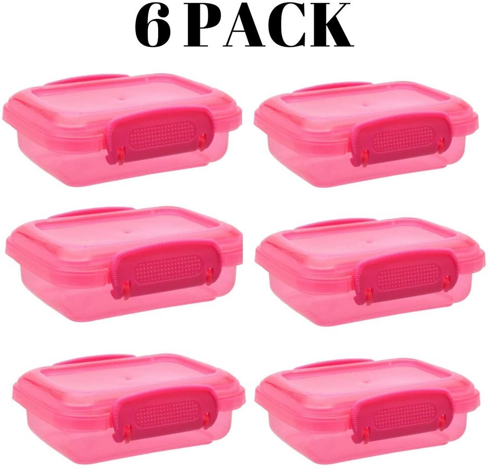 Plastic Snack Containers w/Lock Top Lids 6/Pk, Select: Mixed Colors or Pink