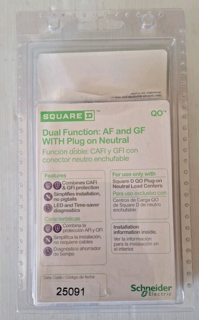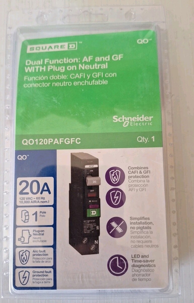 Square D QO 20amp 1 Pole Dual function AFCI/GFCI Plug-On Neutral Circuit Breaker