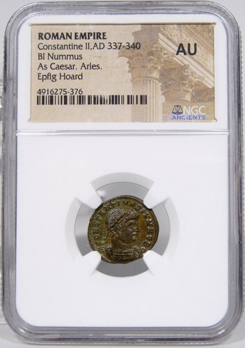 Certified AU (About UNCIRCULATED!) Ancient Roman Coinage of Constantine II