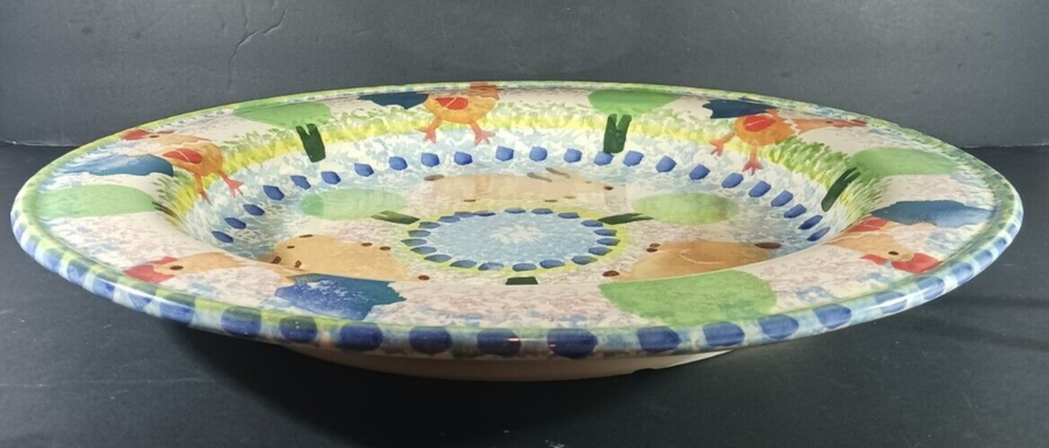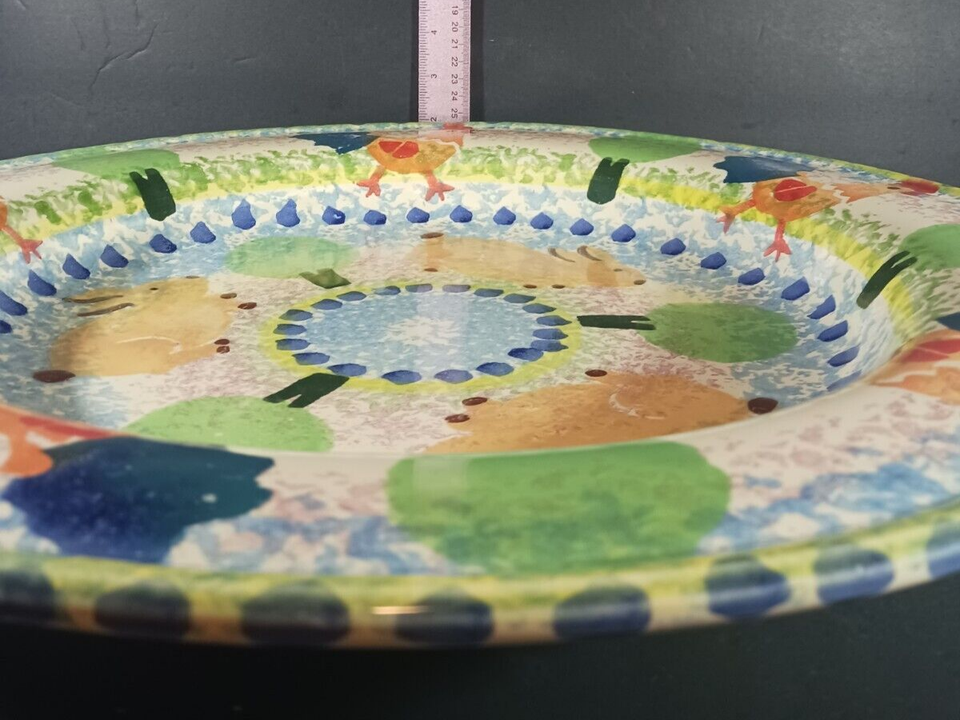 BELLINI PIU PLATTER Rabbits Chickens X Large 18" Italian Pottery Handpainted