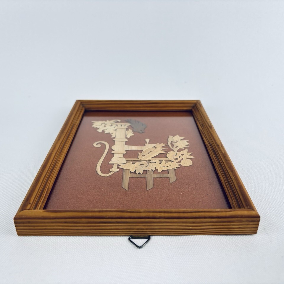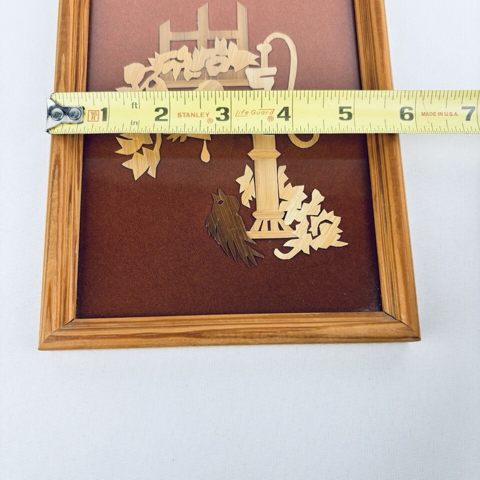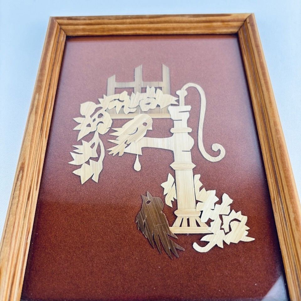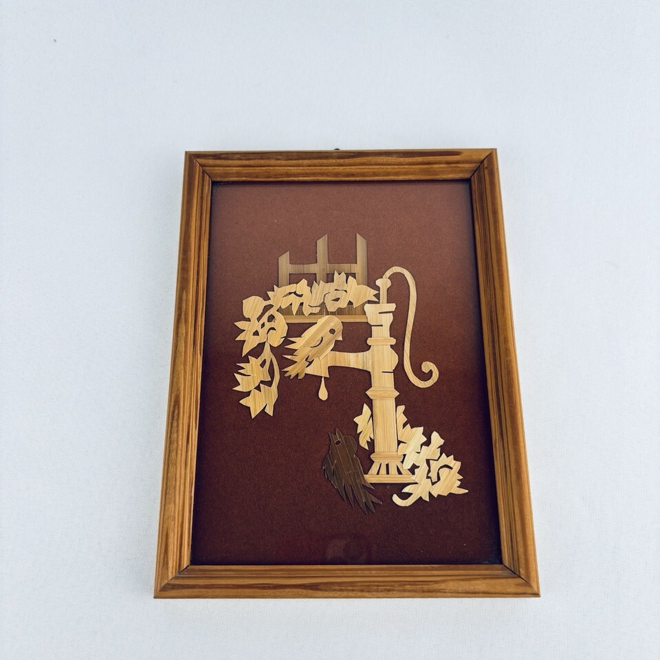 Vintage Folk Art Scherenschnitte Wood Hand Cut - Birds At The Water Pump Framed
